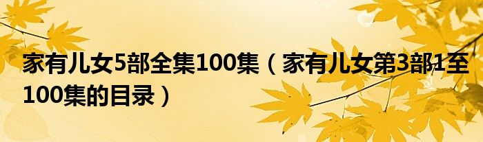 关于家有儿女5部全集100集,家有儿女第3部1至100集的目录这个很多人还不知道,今天菲菲来为大家解答以上的问题,现在让我们一起来看看吧!