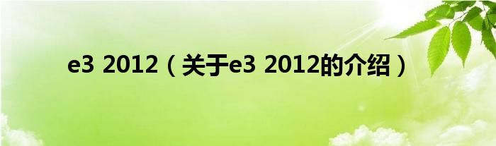 大家好,今天小乐来为大家解答以上的问题。e3 2012,关于e3 2012的介绍很多人还不知道,现在让我们一起来看看吧!