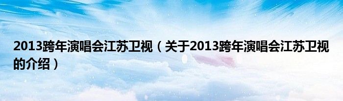 大家好,今天小乐来为大家解答以上的问题。2013跨年演唱会江苏卫视,关于2013跨年演唱会江苏卫视的介绍很多人还不知道,现在让我们一起来看看吧!
