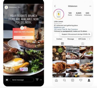 贴纸也可以作为永久按钮添加到业务资料中,可以在“联系人”和“消息”按钮旁边看到。将鼠标悬停在礼品卡,食品订单或筹款活动上将显示“在期间支持此帐户”文字。看到贴纸的用户可以在他们自己的故事中分享它们,以放大促销活动。而且由于现在很多人都在花时间浏览故事,所以这比常规帖子中显示的更多。
