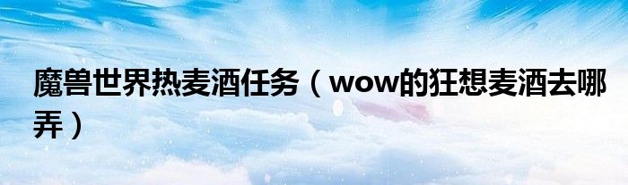 关于魔兽世界热麦酒任务,wow的狂想麦酒去哪弄这个很多人还不知道,今天菲菲来为大家解答以上的问题,现在让我们一起来看看吧!