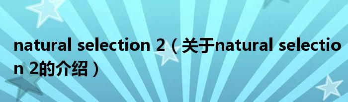大家好,今天小乐来为大家解答以上的问题。natural selection 2,关于natural selection 2的介绍很多人还不知道,现在让我们一起来看看吧!