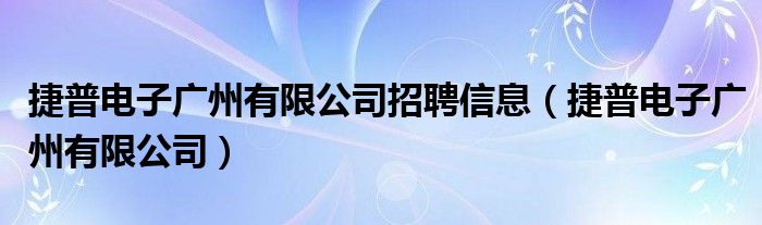 关于捷普电子广州有限公司招聘信息,捷普电子广州有限公司这个很多人还不知道,今天菲菲来为大家解答以上的问题,现在让我们一起来看看吧!