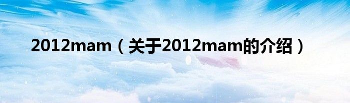 大家好,今天小乐来为大家解答以上的问题。2012mam,关于2012mam的介绍很多人还不知道,现在让我们一起来看看吧!