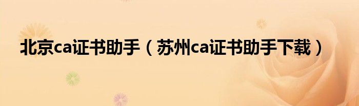北京ca证书助手(苏州ca证书助手下载)