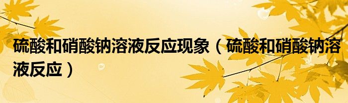 关于硫酸和硝酸钠溶液反应现象,硫酸和硝酸钠溶液反应这个很多人还不知道,今天菲菲来为大家解答以上的问题,现在让我们一起来看看吧!