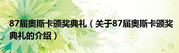 大家好,今天小乐来为大家解答以上的问题。87届奥斯卡颁奖典礼,关于87届奥斯卡颁奖典礼的介绍很多人还不知道,现在让我们一起来看看吧!