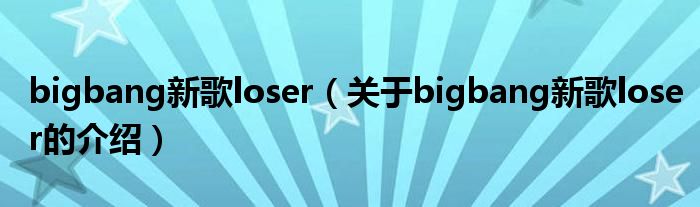 1、《loser》是由BIGBANG\\u0026JGG作词BIGBANG演唱的一首中文歌曲。