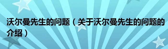 沃尔曼先生的问题(关于沃尔曼先生的问题的介绍)