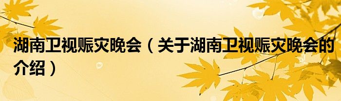 大家好,今天小乐来为大家解答以上的问题。湖南卫视赈灾晚会,关于湖南卫视赈灾晚会的介绍很多人还不知道,现在让我们一起来看看吧!
