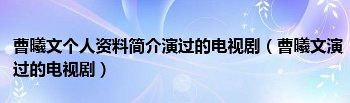 曹曦文个人资料简介演过的电视剧(曹曦文演过的电视剧)