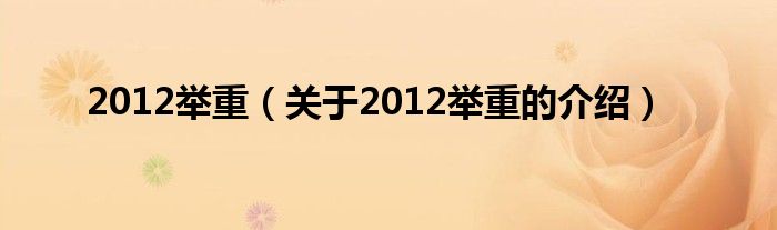 2012举重(关于2012举重的介绍)