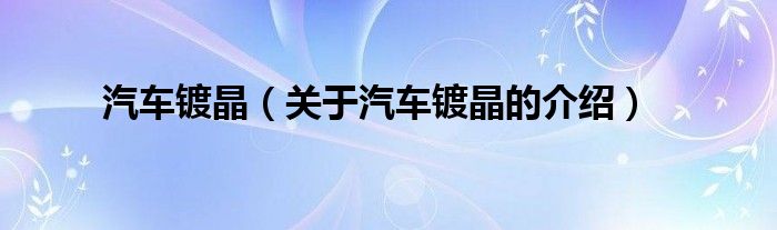 大家好,今天小乐来为大家解答以上的问题。汽车镀晶,关于汽车镀晶的介绍很多人还不知道,现在让我们一起来看看吧!