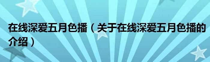 大家好,今天小乐来为大家解答以上的问题。在线深爱五月色播,关于在线深爱五月色播的介绍很多人还不知道,现在让我们一起来看看吧!