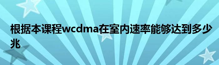 关于根据本课程wcdma在室内速率能够达到多少兆这个很多人还不知道,今天菲菲来为大家解答以上的问题,现在让我们一起来看看吧!