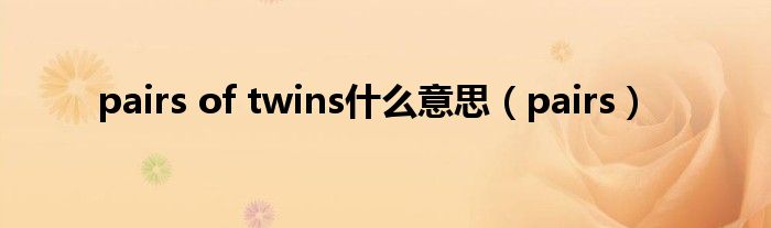 关于pairs of twins什么意思,pairs这个很多人还不知道,今天菲菲来为大家解答以上的问题,现在让我们一起来看看吧!