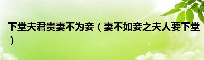 关于下堂夫君贵妻不为妾,妻不如妾之夫人要下堂这个很多人还不知道,今天菲菲来为大家解答以上的问题,现在让我们一起来看看吧!