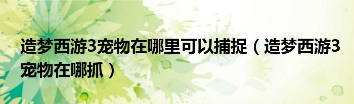 造梦西游3宠物在哪里可以捕捉(造梦西游3宠物在哪抓)