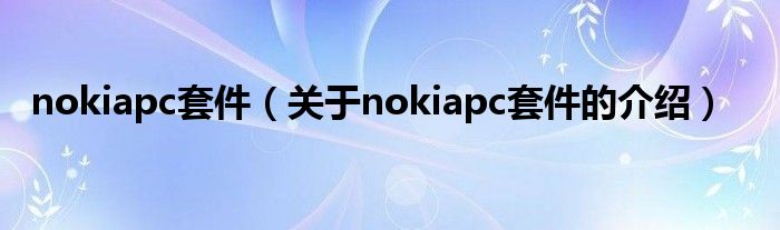 大家好,今天小乐来为大家解答以上的问题。nokiapc套件,关于nokiapc套件的介绍很多人还不知道,现在让我们一起来看看吧!