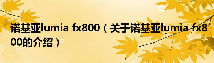 诺基亚lumia fx800(关于诺基亚lumia fx800的介绍)