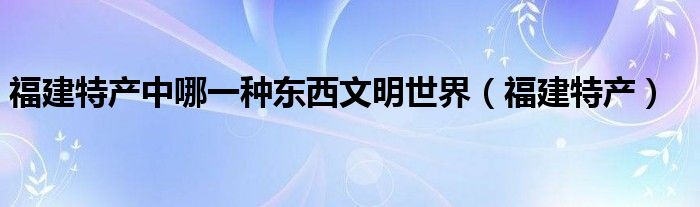 关于福建特产中哪一种东西文明世界,福建特产这个很多人还不知道,今天菲菲来为大家解答以上的问题,现在让我们一起来看看吧!