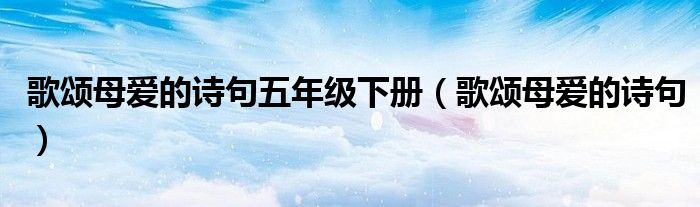 关于歌颂母爱的诗句五年级下册,歌颂母爱的诗句这个很多人还不知道,今天菲菲来为大家解答以上的问题,现在让我们一起来看看吧!