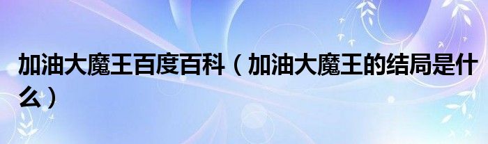 关于加油大魔王百度百科,加油大魔王的结局是什么这个很多人还不知道,今天菲菲来为大家解答以上的问题,现在让我们一起来看看吧!