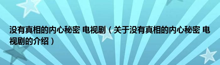 没有真相的内心秘密电视剧(关于没有真相的内心秘密电视剧的介绍)
