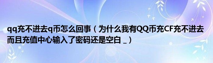 关于qq充不进去q币怎么回事,为什么我有QQ币充CF充不进去 而且充值中心输入了密码还是空白 _这个很多人还不知道,今天菲菲来为大家解答以上的问题,现在让我们一起来看看吧!