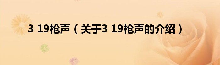大家好,小都来为大家解答以上的问题。3 19枪声,关于3 19枪声的介绍很多人还不知道,现在让我们一起来看看吧!