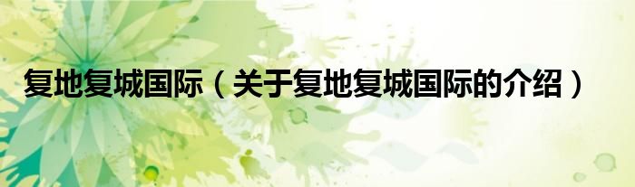 大家好,小都来为大家解答以上的问题。复地复城国际,关于复地复城国际的介绍很多人还不知道,现在让我们一起来看看吧!