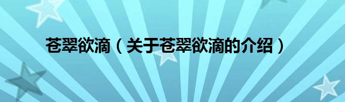 大家好,小都来为大家解答以上的问题。苍翠欲滴,关于苍翠欲滴的介绍很多人还不知道,现在让我们一起来看看吧!