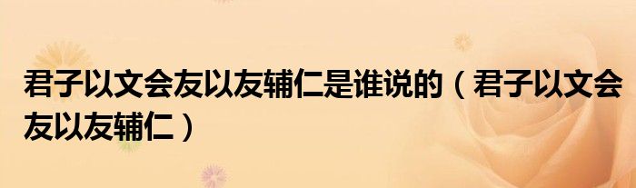 关于君子以文会友以友辅仁是谁说的,君子以文会友以友辅仁这个很多人还不知道,今天菲菲来为大家解答以上的问题,现在让我们一起来看看吧!