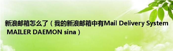 关于新浪邮箱怎么了,我的新浪邮箱中有Mail Delivery System MAILER DAEMON sina这个很多人还不知道,今天菲菲来为大家解答以上的问题,现在让我们一起来看看吧!