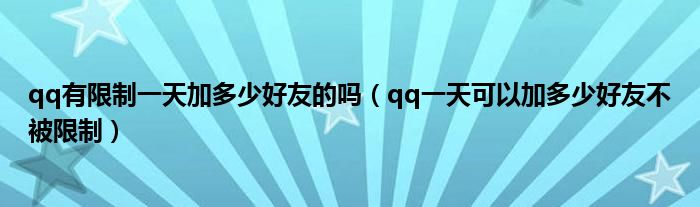 关于qq有限制一天加多少好友的吗,qq一天可以加多少好友不被限制这个很多人还不知道,今天菲菲来为大家解答以上的问题,现在让我们一起来看看吧!