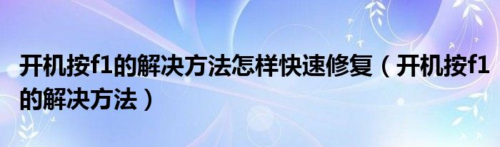 大家好,雨雨来为大家解答以上问题,开机按f1的解决方法怎样快速修复,开机按f1的解决方法很多人还不知道,现在让我们一起来看看吧!