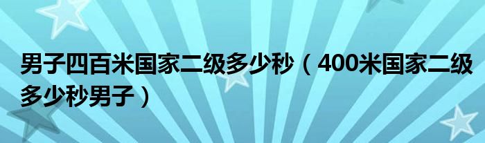 大家好,小晋来为大家解答以下问题,关于男子四百米国家二级多少秒,400米国家二级多少秒男子很多人还不知道,今天让我们一起来看看吧!