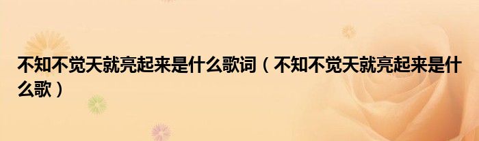 大家好,小飞来为大家解答以上问题,不知不觉天就亮起来是什么歌词,不知不觉天就亮起来是什么歌很多人还不知道,现在让我们一起来看看吧!