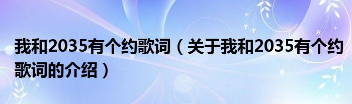 大家好,小都来为大家解答以上的问题。我和2035有个约歌词,关于我和2035有个约歌词的介绍很多人还不知道,现在让我们一起来看看吧!