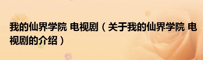 我的仙界学院电视剧(关于我的仙界学院电视剧的介绍)