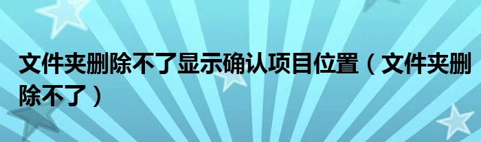 大家好,小飞来为大家解答以上问题,文件夹删除不了显示确认项目位置,文件夹删除不了很多人还不知道,现在让我们一起来看看吧!