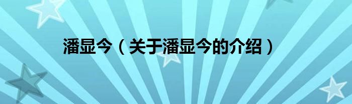 大家好,小都来为大家解答以上的问题。潘显今,关于潘显今的介绍很多人还不知道,现在让我们一起来看看吧!