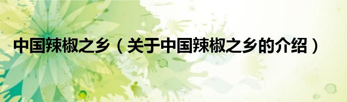 中国辣椒之乡(关于中国辣椒之乡的介绍)