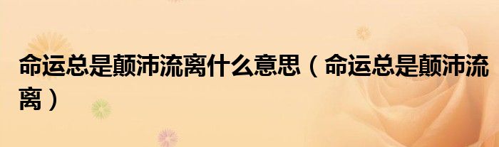 大家好,小飞来为大家解答以上的问题。命运总是颠沛流离什么意思,命运总是颠沛流离这个很多人还不知道,现在让我们一起来看看吧!