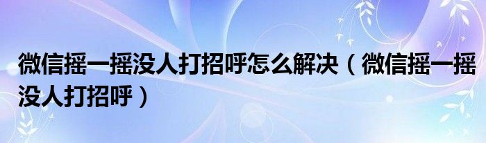 微信摇一摇没人打招呼怎么解决(微信摇一摇没人打招呼)