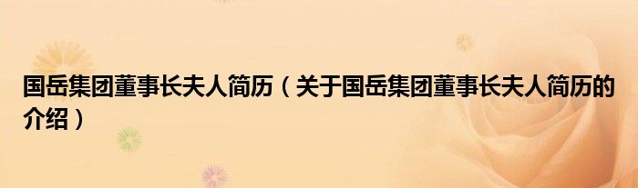 大家好,小都来为大家解答以上的问题。国岳集团董事长夫人简历,关于国岳集团董事长夫人简历的介绍很多人还不知道,现在让我们一起来看看吧!