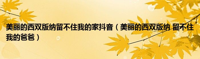 美丽的西双版纳留不住我的家抖音,美丽的西双版纳 留不住我的爸爸这个很多人还不知道,小飞来为大家解答以上的问题。现在让我们一起来看看吧!