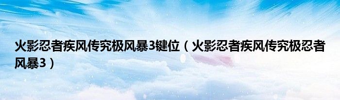 火影忍者疾风传究极风暴3键位,火影忍者疾风传究极忍者风暴3这个很多人还不知道,小飞来为大家解答以上的问题。现在让我们一起来看看吧!