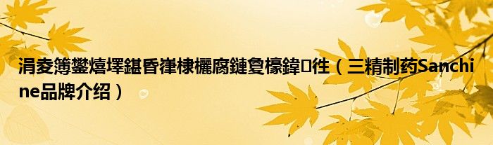 大家好,小源来为大家解答以上问题。涓夌簿鐢熺墿鍖昏嵂棣欐腐鏈夐檺鍏徃,三精制药Sanchine品牌介绍很多人还不知道,现在让我们一起来看看吧!