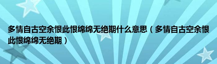 多情自古空余恨此恨绵绵无绝期什么意思,多情自古空余恨此恨绵绵无绝期这个很多人还不知道,小飞来为大家解答以上的问题。现在让我们一起来看看吧!